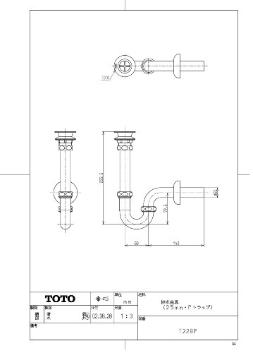 TOTO 排水金具(25mm・Pトラップ) T22BP