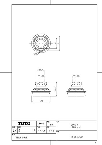 TOTO 大便器用スパッド(32mm・再生水仕様) T52SR32D