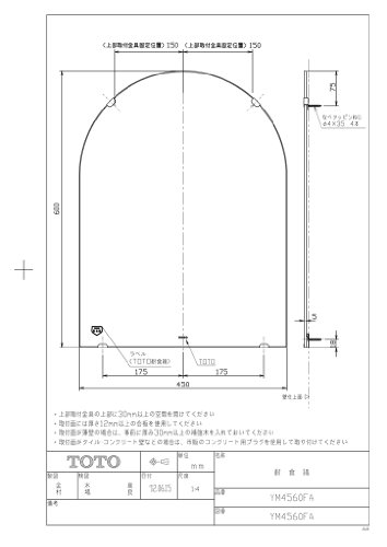 TOTO 耐食鏡 アーチ形450x600 YM4560FA