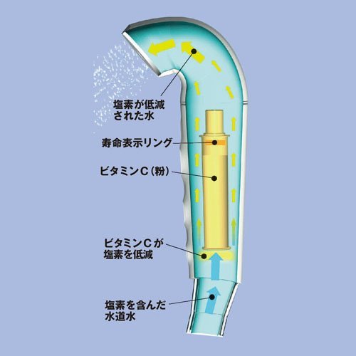 - ビタミンCで塩素を低減し、髪や素肌にやさしいシャワーです。