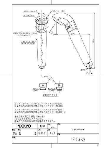 TOTO ビタCシャワーヘッド 原水・塩素低減モード切替可能タイプ(アダプター付) THY718-2R