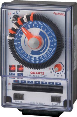 メーカー名:スナオ電気(株) 【特徴】 クォーツ時計により高精度です。(月差15秒以内) 7日間の曜日設定が可能です。 RoHS指令対応品です。 【用途】 ビル・工場設備。(電気炉、空調設備、セキュリティ) 仕様 取付方法:表面取付型 幅(mm):96 奥行(mm):70 高さ(mm):155 消費電力(W):3 質量(g):650 電源電圧:AC100/200V(指定)