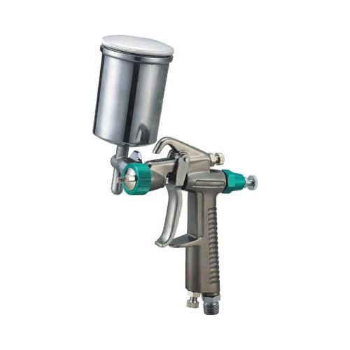 【特徴】●専用カップとのセットです。●軽量ボディーで小さなものを美しく仕上げる最適品。美術工芸玩具、試作、補修など、幅広くご使用いただけます。【仕様】●ノズル径(mm):0.5●所要圧縮機(kW):0.75~1.5●空気使用量(L/min):90●パターン開き(mm):115●霧化段階:汎用●質量(g):215●重力式●カップ取付口:G1/4●エア取入口:G1/4●カップ容量:150cc【材質/仕上】●本体:アルミダイカスト●接液部:ステンレス(SUS303)・真鍮●カップ:アルミダイカスト【用途】●小物の中塗、上塗に。●色替えが多い塗装に。