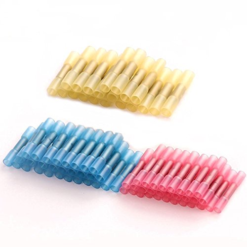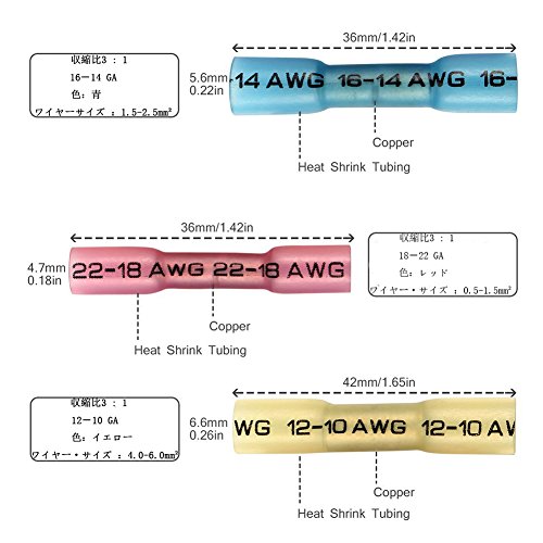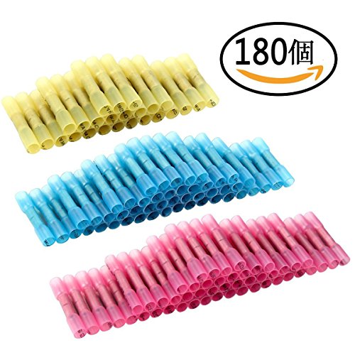 TSECO 180個防水形圧着スリーブ(SB形)絶縁圧着端子 防水 熱収縮チューブ 圧着端子 ワイヤーコネクタ 熱収縮絶縁コネクター 絶縁被覆つき 絶縁圧着端子セット スプライスキット 絶縁キャップセット25個セット3サイズ122-10GA 赤 青 黄