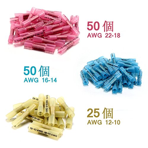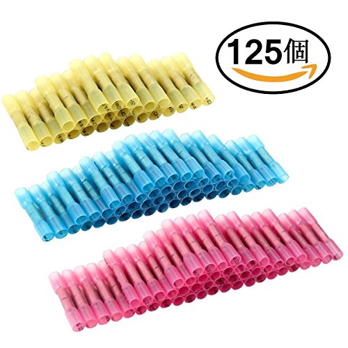 TSECO 125個防水形圧着スリーブ(SB形) 絶縁圧着端子 ワイヤーコネクタ 熱収縮絶縁コネクター 絶縁被覆つき 絶縁圧着端子セット スプライスキット 防水 熱収縮チューブ 圧着端子 絶縁キャップセット 125個セット22-10GA 赤 青 黄