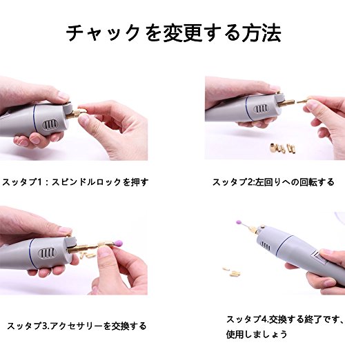 - 用途:模型工作、ガラス彫刻、彫金、アクセサリー工作、洗練、研磨、切断、トリミング、彫刻など作業に可能