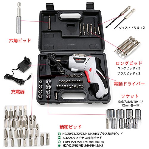 TSECOバッテリードライバー スクリュードライバー 電動式ドリル 高機能モデル 電動diy工具 小型ミニドライバー 穴あけ 締付け 正逆転可能 照明機能 充電式 LEDライト 4.8V 48セット