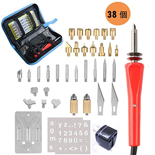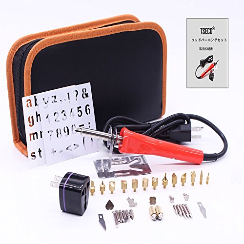 TSECO ウッドバーニングセット 焼き絵セット 木彫りキット 木製クラフトツール DIY作業工具 彫刻 型押し 美術工芸品 趣味 日本語説明書 日本専用変換プラグ付き 38個