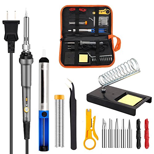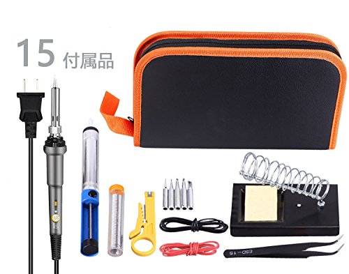 TSECO はんだこて 電子式半田こてセット DIY作業工具 電子作業ツール 温度調節可能 ダイヤル式 交換コテ先付 収納ケース付 はんだ吸い取り器付き 60W 110V 14セット