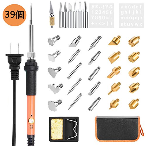 TSECO 39-in-1 多機能110V/60W温度調節可能なウッドバーニングセット はんだコテセット 焼き絵セット 木製クラフトツール 木彫り 彫刻 美術工芸品 電子工作 オーディオ DIY作業工具 (200-450℃)趣味 変換ヒント付き