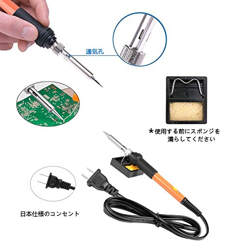 ●はんだごてを使用中に、温度がとても高くて、やけどを避けるために、金属部分を触らないでください。