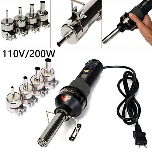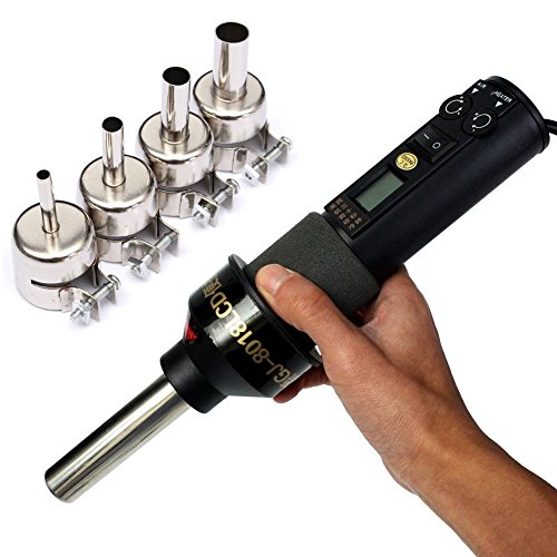 TSECO ヒートガン ホットエアガン 熱風溶接機 熱風機 ヒーティングツール 手持ち ミニ 温度調節可能 熱処理 補修 溶接 diy作業 デジタル表示付 4本ノズル 110V/200W