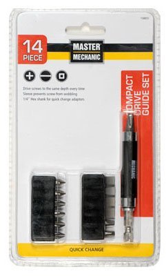 Master Mechanic, 14 Piece Quick Change Compact Screw Guide Set, Contains 2 P1, 4 P2, 2 P3, 2 #4-#6 & Two #6-#8 Slotted, 1 Sq2 Square Recess, 1 Compact Screw Guide Prevents Screws From Wobbling.