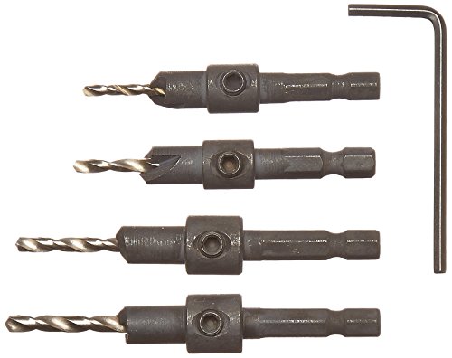 Includes 4 Power Groove Countersinks. Master Mechanic, Quick Change Countersink Set, Drill, Countersink Or Counterbore In Wood, Includes Hex Wrench For Set Screws, Fits All Brands, Speed Shank Eliminates Tool From Slipping In Drill Chuck, Includes 4 Power Groove Countersinks #6-3/32", #8-7/64", #10-1/8" #12-1/8" & A Hex Wrench, Carded.