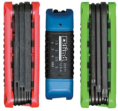 Made in the USA. Sae/metric/torx combination fold up Key set, plastic, 24-IN-1, includes: 25911, 25171 & 25581, sizes marked on handle, flat spring in case bottom holds keys at any angle, 8650 chrome nickel Alloy steel Drawn to tolerance of Plus .000/Minus .001, Hex corners are sharp & clean.