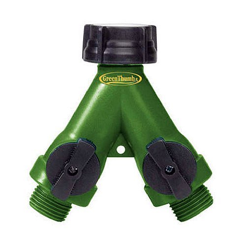 The perfect two way manifold. Green Thumb, two way, full flow poly manifold. Premium, poly Y shut off with swivel nut. Provides 45% greater water flow. Extra large handles are easy to grip, and turn. Swivel nut assures easy hose connection to the shut off, and faucet. Rugged polymer design construction.