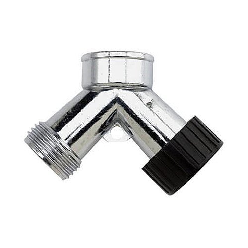 A perfect connector to use and take care of your watering needs. Green Thumb, zinc "Y" connector. Uses two hoses from one faucet. End cap for single hose use. Has a heavy duty zinc construction. Easy to assemble, and is a more fast and efficient way to water.
