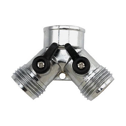 Easy to assemble. The perfect shut off valves to use and take care of your watering needs. Green Thumb, zinc "Y" shut off valves. Twin shut off valves, control water flow for two hoses. Made with heavy duty zinc construction. Lever style valve handles. Easy to assemble, and is a more fast and efficient way to water.