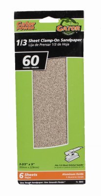 Featuring pre-cut sheets the Gator Aluminum Oxide Sanding Sheets are specially designed for use with any 1/3 sheet clamp on palm or finishing sander. The heavy duty resin sandpaper offers optimal resistance against heat or tearing providing a longer life. Ideal for use on a variety of materials including wood, metal, drywall, fiberglass and painted surfaces. Available in a six pack with 60 grit and measures 3-2/3" x 9".