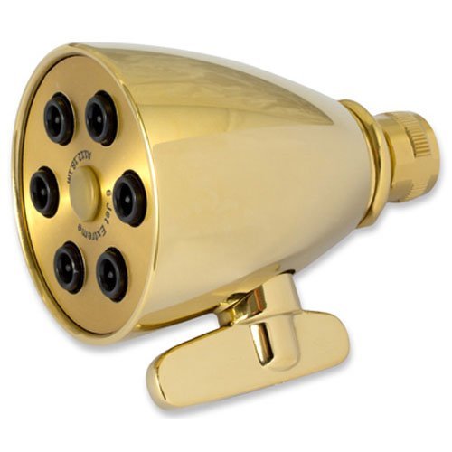 Solid brass construction. With 48 adjustable spray channels. Siz soray jets. Brass finish. Brass Finish, 6 Jet Extreme Power Shower Head, 6 Spray Jets Provide 48 Different Adjustable Spray Channels, Solid Brass With Polished Brass Finish, Side Lever Raises & Lowers Jets Adjusting Spray Force & Feel, 5 Flow Rate System Insures A Good Strong Shower Even In Lower Pressure Areas.
