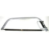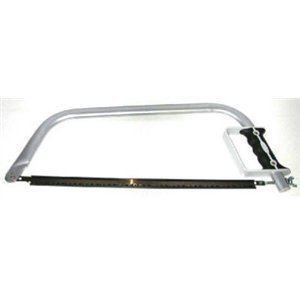 Grey metal with black handle. Green Thumb, 24", Deluxe Bow Saw, With Hand Guard, SK5 High Carbon Steel Raker Tooth Saw Blade, Cold Rolled Steel Tubular Handle, Gray Metal With Black Handle, Comfort Grip With Knuckle Protector.