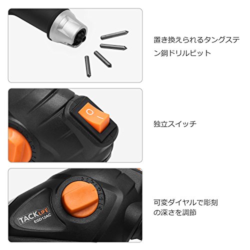 Tacklife EGD12AC 電動彫刻機 ミニルーター 深さ調整可能 DIY/彫刻/彫字/彫絵に コンパクト 豊富な付属品 日本語取扱説明書 エングレーバー