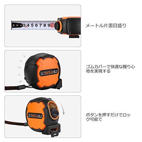 Tacklife TM-B02 コンベックス 5.5m 25mm幅 メートル目盛 ロック機能付 テープメジャー