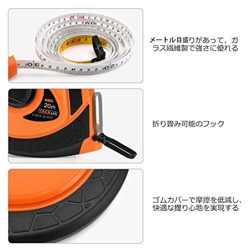 Tacklife TM-C01巻尺 20m 15mm幅 メートル目盛 一般測定・道路・鉄道・電気工事可用 ガラス繊維製 テープメジャー 手動ハンドル