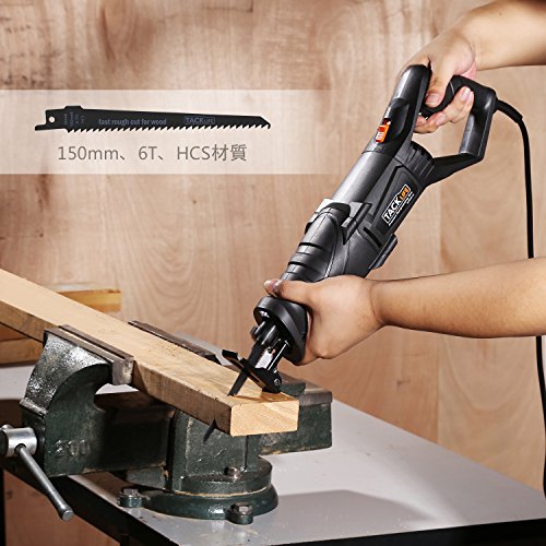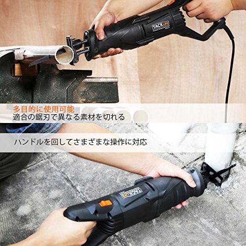 Tacklife RPRS01A レシプロソー 850W 2800rpm 木工 鉄工 LEDライト付き 替刃*2 電気のこぎり 回転可能なハンドル 可変速度 往復鋸 ケース付き