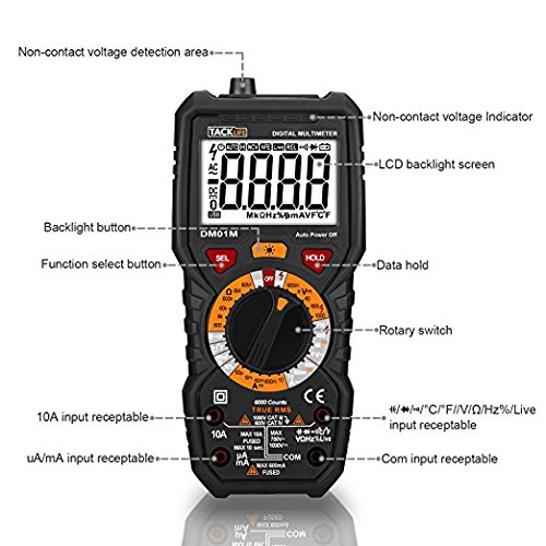 Tacklife DM01M テスター 6000 実効値測定 手動レンジ 電流・電圧・抵抗・温度・周波数(並行輸入品)