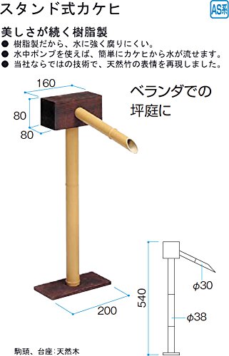 - 樹脂製だから、水に強く腐りにくい。水中ポンプを使えば、簡単にカケヒから水が流せます。天然竹の表情を再現しました。