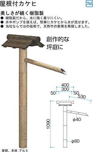 • 樹脂製だから、水に強く腐りにくい。水中ポンプを使えば、簡単にカケヒから水が流せます。天然竹の表情を再現しました。