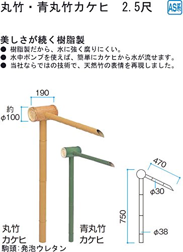 • 樹脂製だから、水に強く腐りにくい。水中ポンプを使えば、簡単にカケヒから水が流せます。天然竹の表情を再現しました。