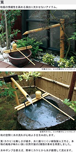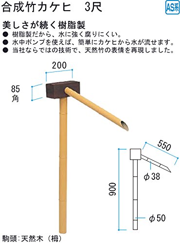 • 樹脂製だから、水に強く腐りにくい。水中ポンプを使えば、簡単にカケヒから水が流せます。天然竹の表情を再現しました。