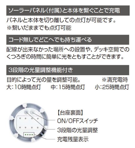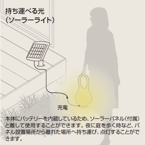「持ち運べるソーラーLEDライト」は、光をほしい場所に置く、持ち運ぶことができるソーラーガーデンシステムです。