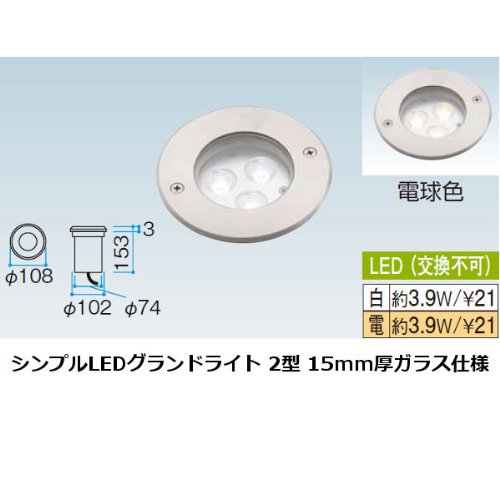 シンプルLEDグランドライト 2型 15mm厚ガラス仕様 電球色