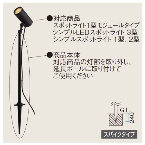 「延長ポール」は、対応商品の灯部を取り外し延長ポールに取り付けることで高さをつけ、使用することができます。