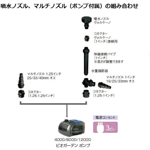 - 付属品:伸縮接続パイプ 接続コネクター マルチノズル2個 1インチ噴水ノズル(1種類付属)