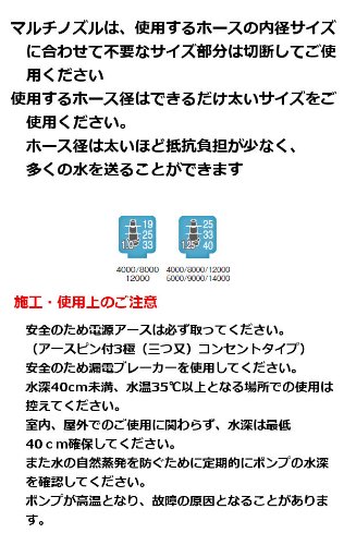 - 備考:水量調節可能19、25、33mmマルチノズルのみ対応 加熱保護装置付 内径19、25、33、40mmホースに対応