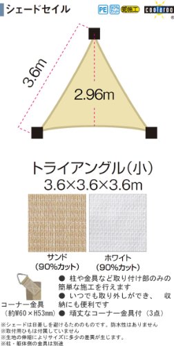 シェードセイル トライアングル(小) コーナー金具(3点)付 サンド