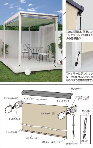 紫外線を90%カットするシェードネットを使用しています。洋風住宅によく似合うスダレのようなシェードのブラインドです。取付ビスで簡単取付できます。建物躯体やポーチガーデンでの日よけ、目かくしに。また、既存のパーゴラなどにも設置可能です。