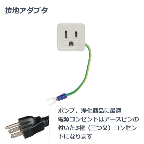 「接地15Aアダプタ」は、ポンプ、浄化商品に最適。電源コンセントはアースピンの付いた3極(三つ又)コンセントになります