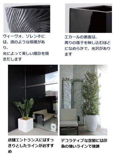 「ヴィーヴォ」「ソレンネ」には、波のような模様があり、光によって美しい陰影を描きだします。「エカール」の表面は、周りの様子を映し込むほどになめらかで、光沢があります。