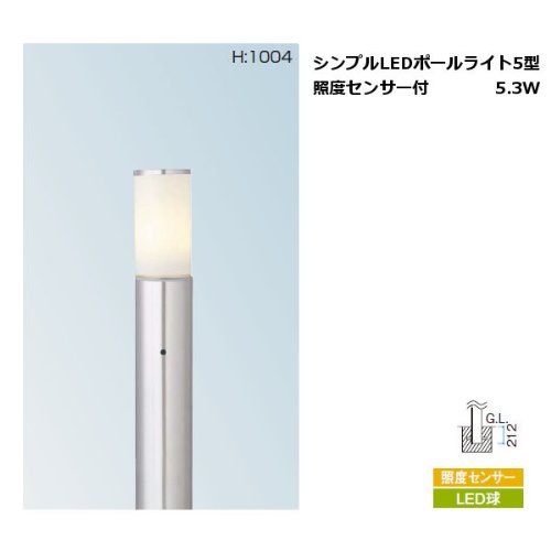 シンプルLEDポールライト5型照度センサー付 5.3W