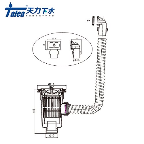 天力キッチン用流し排水栓+溢水ホースXK160C013 114mm