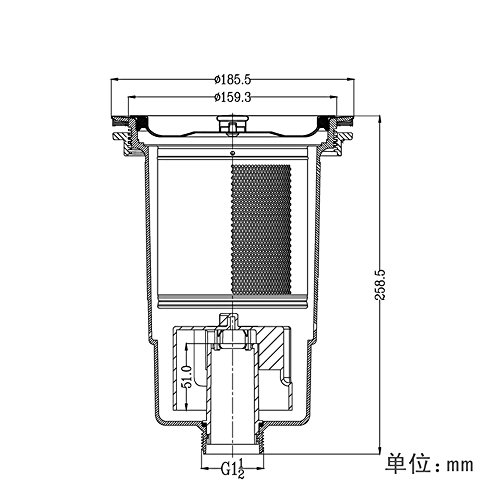 二槽シンク用のカゴ付流し排水栓 ホース接続部のネジサイズG1 1/2 取り付けネジ直径159.3mm