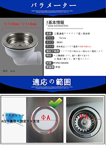 二重濾過ボウルタイプ流し排水栓 排水栓上ところの直径は110/114mm