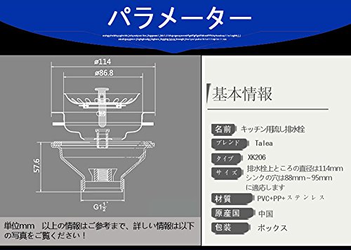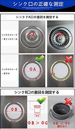 排水栓上ところの直径は114mm シンクの穴は88mm~95mmに適応します