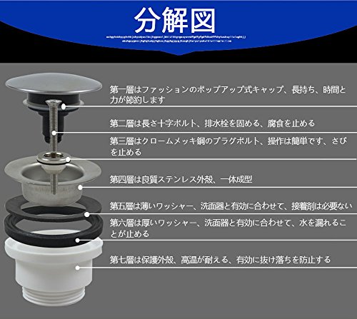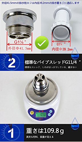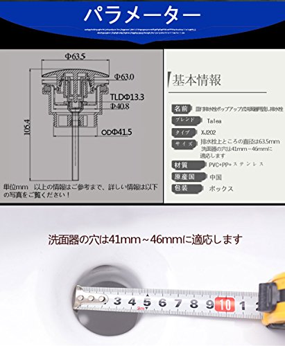 排水栓上ところの直径は63.5mm 洗面器の穴は41mm~46mmに適応します 時間と力が節約します