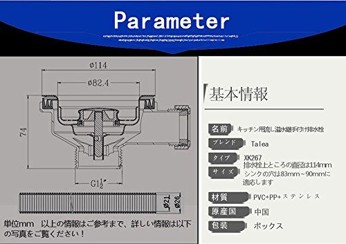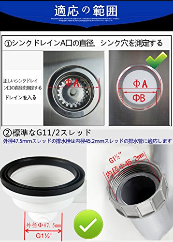 排水栓上ところの直径は114mm シンクの穴は83mm~90mmに適応します